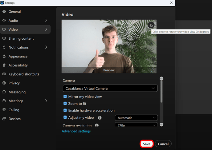 When you select the Casablanca Virtual Camera, it can sometimes happen that Webex flips your image by 90° or 180°. In this article, you will learn two ways to easily fix this issue.
