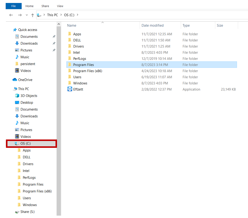 - Open your Windows Explorer and click on your OS (C:) drive.