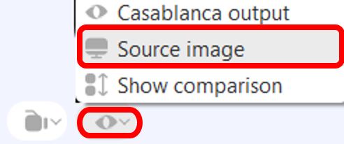 - Klicke auf das Augensymbol in der Ecke unten links und wechsle die Ansicht auf Source Image. Jetzt wird dein unkorrigiertes Bild im Videoanruf angezeigt.